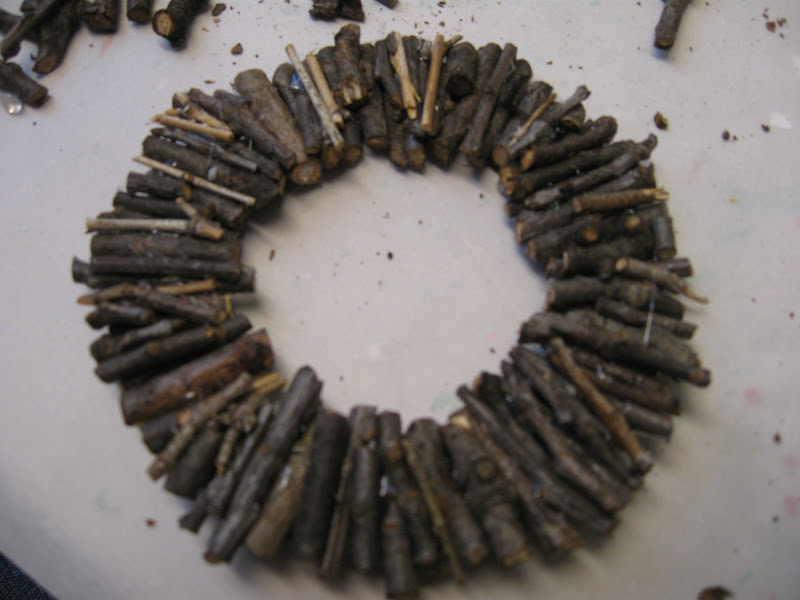 To keep the design balanced, I started by gluing four twigs evenly spaced around the circle, then filled in the gaps. Before I knew it, both sides were completely covered!