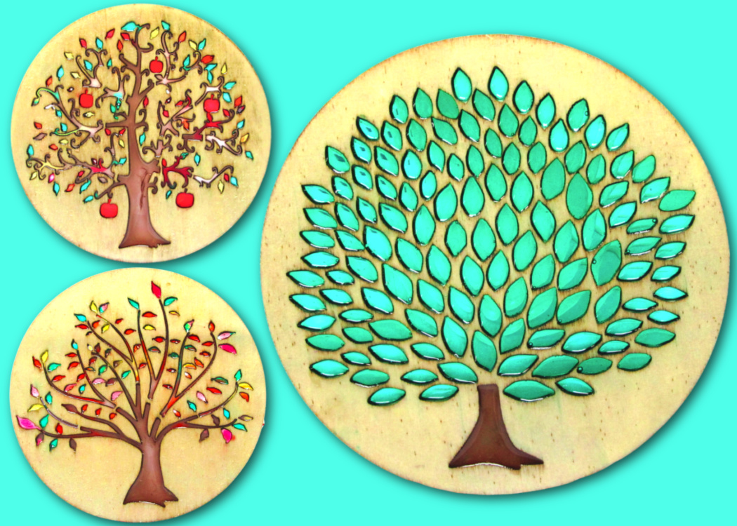 Here are the directions for the wood and resin tree coasters DIY. They are made with wood discs that have trees laser cut in them.